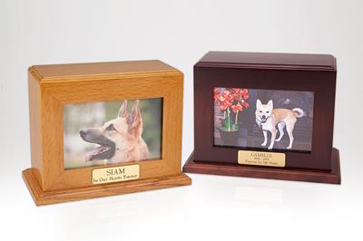 Our Framed Photo Urn is designed for pet owners who wish to display their favorite 4″ x 6″ ‘horizontal’ or ‘vertical’ photographs. This urn style is beautifully crafted from Red Oak or Walnut hardwoods creating a truly lasting memorial to your fallen friend. Each urn style comes with an acrylic window which slides out of the bottom of each ‘opened’ urn for easy installation of your favorite photo. It also includes Free engraved brass name plate. The brass nameplate is added to create a truly personal memorial.